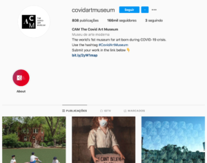 Covid Art Museum é um projeto de publicitários espanhóis, Irene Llorca, José Guerrero e Emma Calvo, que convida artistas do mundo todo a compartilharem obras feitas
